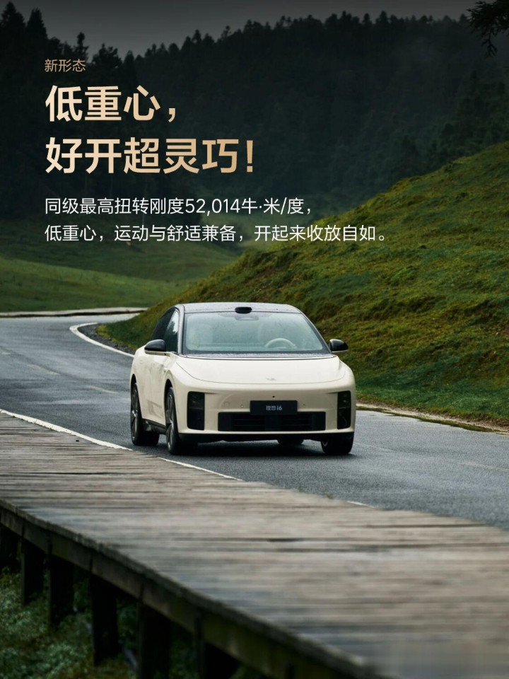 据了解,理想i6拥有克制的车身尺寸,车长4.95米,车内纵向可用空间超3.3米,实现外紧凑、内宽敞的空间魔法。理想i6还实现了同级最高扭转刚度52014牛·米/度低重心,运动与舒适兼备,开起来收放自如。