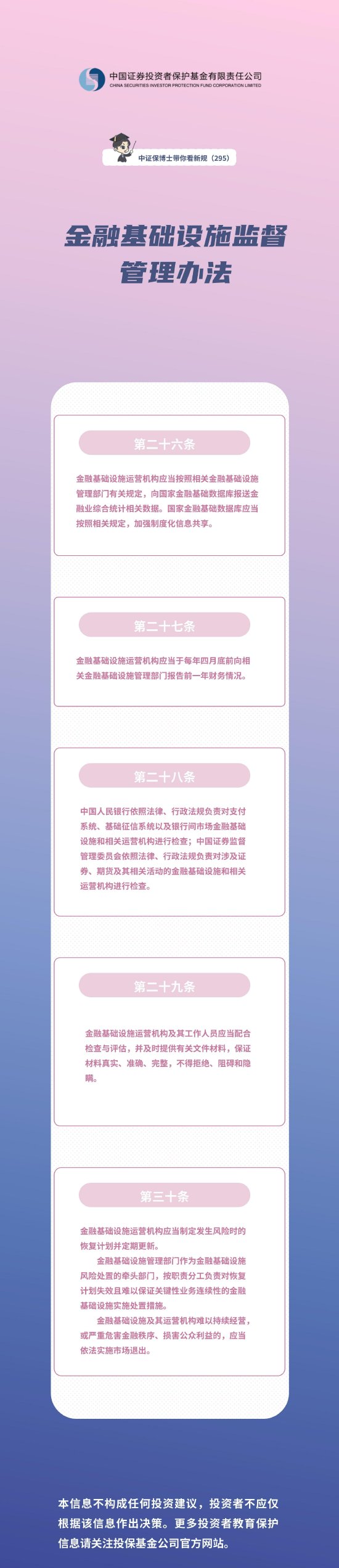 最新配资平台导航中证保博士带你看新规(295)——金融基础设施监督管理办法 最新配资平台导航 来源:配资公司资讯门户网站 网站:配资正规平台排名 日期:2025-09-11 06:36:08 查看:74