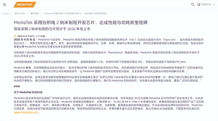 联发科今天在官网发文宣布,首款采用台积电2纳米制程的旗舰系统单芯片(SoC)已成功完成设计流片(Tape out),成为全球首批2nm芯片之一,预计明年底进入量产并上市。